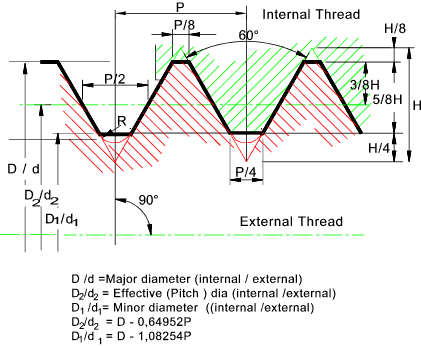 The notes on this page identify the basic ISO thread form and illustrate how the tolerances related to the thread form are developed from the simple rules provided in the relevant Standards. Using the equations and tables available on this page it is possible to obtain the limits for all available dia-pitch-tolerance class combination.