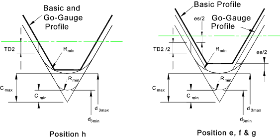 Calculating the limits for the external thread root diameter (d 3)... Root Contours