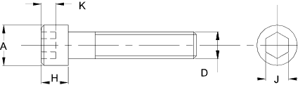 | Nominal | Thread. | Hex Socket Size | Body diameter and Head height | Head Dia | Soc. length | ||