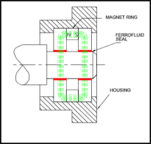 Ferrofluidic sealing technology takes advantage of the response of a fluid, containing a uniform distribution of magnetic particles, to an applied magnetic field. It uses a magnet with magnetically permeable north and south pole pieces and a magnetically permeable shaft to create a permanent magnetic circuit. The magnetic flux is concentrated in the gap under each pole and when ferrofluid is applied to this gap it assumes the shape of a liquid o-ring and produces a hermetic seal.