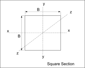 Polar moment of Area ( Izz ) for a square section = B4 /6 (used for torsion equations )
