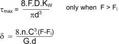 An Extension spring is sometimes tightly wound such that it is prestressed with an initial stress τ i . This results in the spring having a property of an initial tension which must be exceeded before any deflection can take place. When the load exceeds the initial tension the spring behaves according the the formulae above. This relationship is illustrated in the figure below