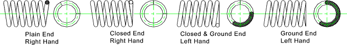 In practice the term (C2 /(C2 + 0,5)) which approximates to 1 can be ignored Compression Spring End Designs The figure below shows various end designs with different handing. Each end design can be associated with any end design. The plain ends are not desirable for springs which are highly loaded or for precise duties.