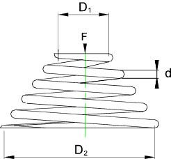 Conical Helical Compression Springs These are helical springs with coils progressively change in diameter to give increasing stiffness with increasing load. This type of spring has the advantage that its compressed height can be relatively small. A major user of conical springs is the upholstery industry for beds and settees.