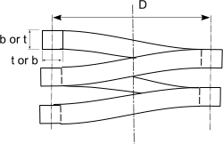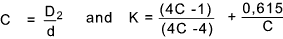 The curvature of the helical spring actually results in higher shear stresses on the inner surfaces of the spring than indicated by the formula above. A curvature correction factor has been determined ( attributed to A.M.Wahl). This (Wahl) factor K w is shown as follows.