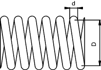 INTRODUCTION A helical spring is a spiral wound wire with a constant coil diameter and uniform pitch. The most common form of helical spring is the compression spring but tension springs are also widely used. . Helical springs are generally made from round wire... it is comparatively rare for springs to be made from square or rectangular sections. The strength of the steel used is one of the most important criteria to consider in designing springs. Most helical springs are mass produced by specialists organisations. It is not recommended that springs are made specifically for applications if off-the-shelf springs can be obtained to the job. Note: Excelcals has produced a set of excel based calculations which contain much of the content found on this page. Excelcalcs - Helical springs