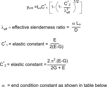 Just as a column will buckle when the load becomes too large a long compression spring may buckle when the deflection exceeds a certain value. The critical deflection is given by the following equation.