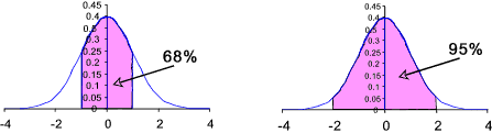 It can be easily proved that for data that is "normally distributed" about 68.3% of the data will be within 1 standard deviation ( σ ) of the mean μ (i.e., within the range μ ± σ). In general there is a relationship between the fraction of the included data and the deviation from the mean in terms of standard deviations e.g the data fraction is related to μ ± c.σ) as shown in the table below
