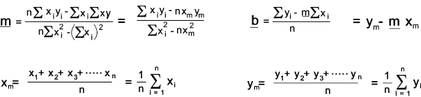 This results in two simultaneous equations for the best fit line with a slope m and y intercept b. Solving these equations result in