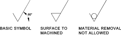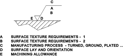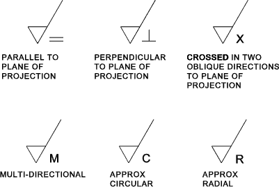 For notes on surface roughness use link Surface Roughness Notes Requirement for machining ![]() Direction of lay ![]() Machining Allowance ![]() The Symbol indicates the surface finish requirements and shows a machining allowance requirement of 3mm on all surfaces. Symbol for surface texture all component surfaces ![]() The Symbol indicates that all of the component surfaces are to be machined... Location of Surface Texture Symbols ![]() The shows typical locations for surface texture symbols... |