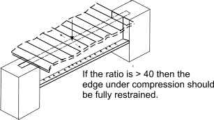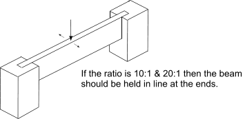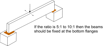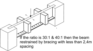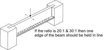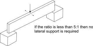 Timber structures For structures made from timber beams operating within their elastic limits the design principles involved are similar to those used for steel structures. Structures Lateral Stability of built in beams Beams with large depth to thickness ratios are at risk of buckling under bending forces. BS 5268 uses the ratio of Ixx (2nd moment of area of section about neutral axis) to Iyy (2nd moment of area of the section perpendicular to the neutral axis ) to identify the support requirements such that there is no risk of bucking