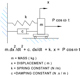 Steady State Forced Vibrations On the page Ref..Forced Vibrations covering vibration of a mass (m) with a k spring stiffness and c viscous damping subject to a sinusoidal force of P cosω t.